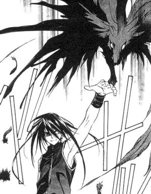 - Bind: Dark's feathers can be thrown to move into a flying position around someone. Once there, the energy from the feathers will move to connect to each other in a formation around the target and move to bind them. The connection can be magical or physical. Through this means, he can attempt to restrict the movements of an enemy. This move can be resisted.