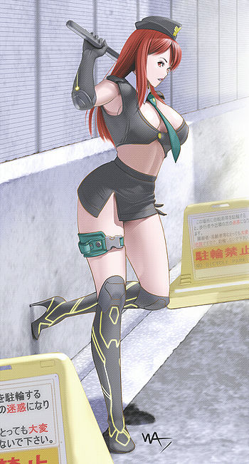 Police Force Martial Arts: Cherry is very skilled in hand to hand combat, focusing on kicks and takedowns. She moves very fast and has an acrobatic style, able to hop around and cartwheel her opponents down. She is also amazingly skilled and vicious at takedowns, faking weakness then striking a ...ahem.. weak spot on her male opponents and smashing them down with her leg. She also knows how to use her tonfa like extensions of her own body.