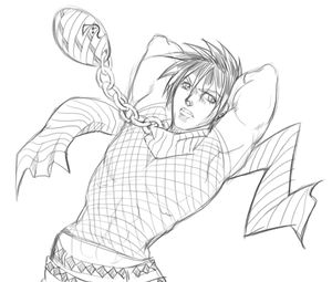 As Kamen grew, his father acquired a Tekkou and started to train him in the use of his flame. Unlike his father and uncle, he did not have a mystical animal, so using and mastering his flame was not especially hard. It manifested naturally, under the guidance of his father, in the shape of a bat. Furthermore, he discovered his flame could be used for protection or attack, for immobilisation and murder, for every imaginable contrast that tools gives you.. and so, he changed his focus towards learning how to use his flame as a ninja, and ended up learning on his own, with a natural ability, how to use chains and the mankiri gusari (Chain Sickle Ninja Weapon). He was very pleased with this, as this made him not only a stronger ninja, but a worthy heir to be an Ura Hokage Uruha Flame Master.