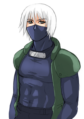 Tall, rugged without being overly large, keeps his face hidden under a mask, and has a distinct military look to his outfits. Sometimes wears the Jounin vest, but not always, usually when on extended missions only. Wears gloves where only the forefinger and thumb are bared.