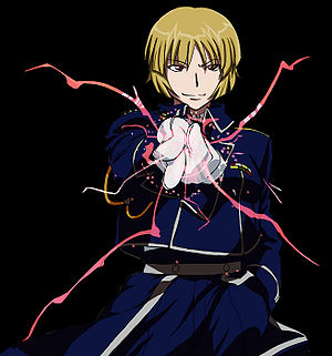 Alchemy: She has the ability to transmute one object into another using the laws of Equivalent Exchange and Transmutation Circles. Like her father she carries her transmutation glove which allows for quick access to a transmutation circle since it is on the back of the gloves. She will also carry various materials such as gunpowder, oil or other flammable items for a much bigger effect. for complex or multiple items in one go she still needs to draw the circle however as this are much more complicated transmutations.