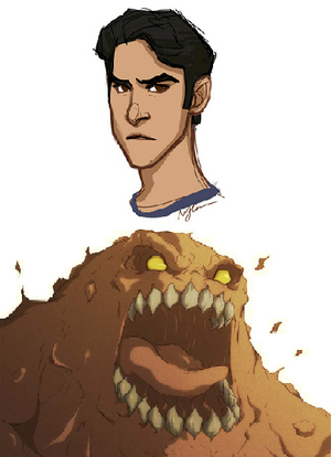 - Monstrous (1-3): As Gabriel overuses his power (or is beaten up sufficiently), his body will cease to return to its natural form. At first, it looks like he is sweating profusely and melting a little (1 point flaw), before he loses his body's color and becomes a more apparent clay creature (2 points), and finally loses any human shape he had, instead appearing as a clay monster (3 points, see picture above).
